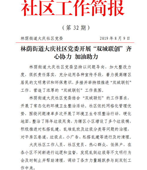 林荫街道大庆社区党委开展“双城联创”齐心协力 加油助力