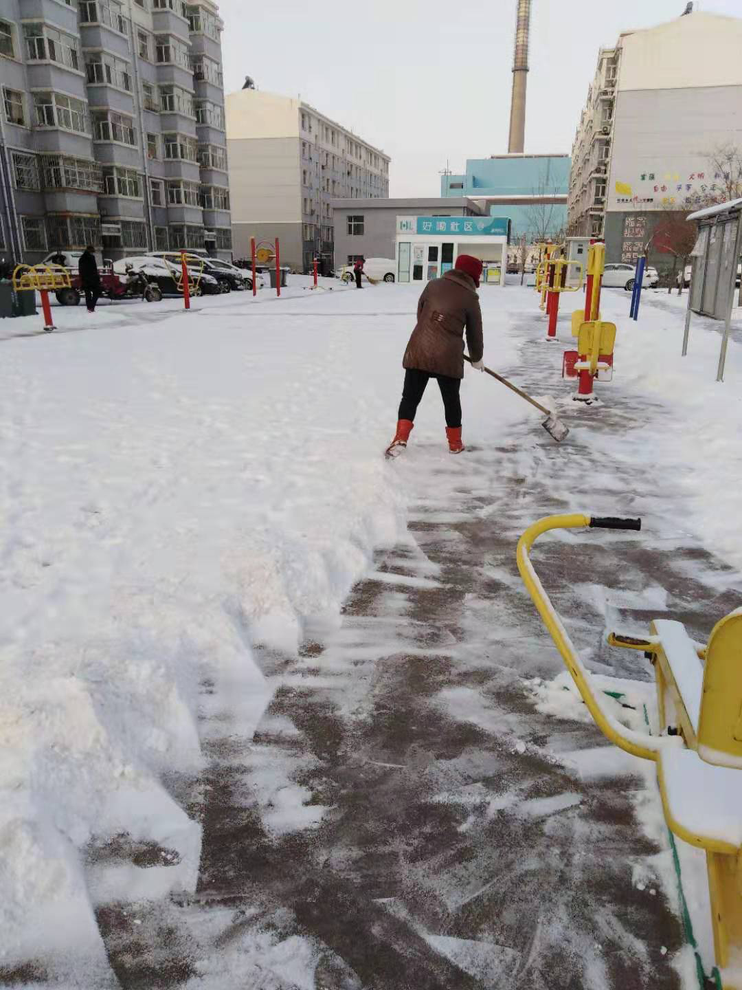 活动现场,在社区工作人员的带领下,志愿者冒着严寒,团结协作,干的热火朝天。由于天气较冷,志愿者们都冻得手脸通红,但是谁也没说一句累,没喊一声苦,他们手拿铁锹、扫帚等工具,扫的扫,推的推,个个努力争先,热忱投入,志愿者们的身影在皑皑白雪中呈现出一道亮丽的风景。经过大家的努力,原本布满积雪的地面已被基本清扫干净,为出行的市民提供了一个安全、便利的交通环境。